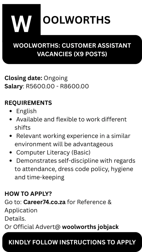 As a proud South African brand, Woolworths is committed to Transformation. Meeting our Employment Equity goals will be taken into account in our recruitment decisions.