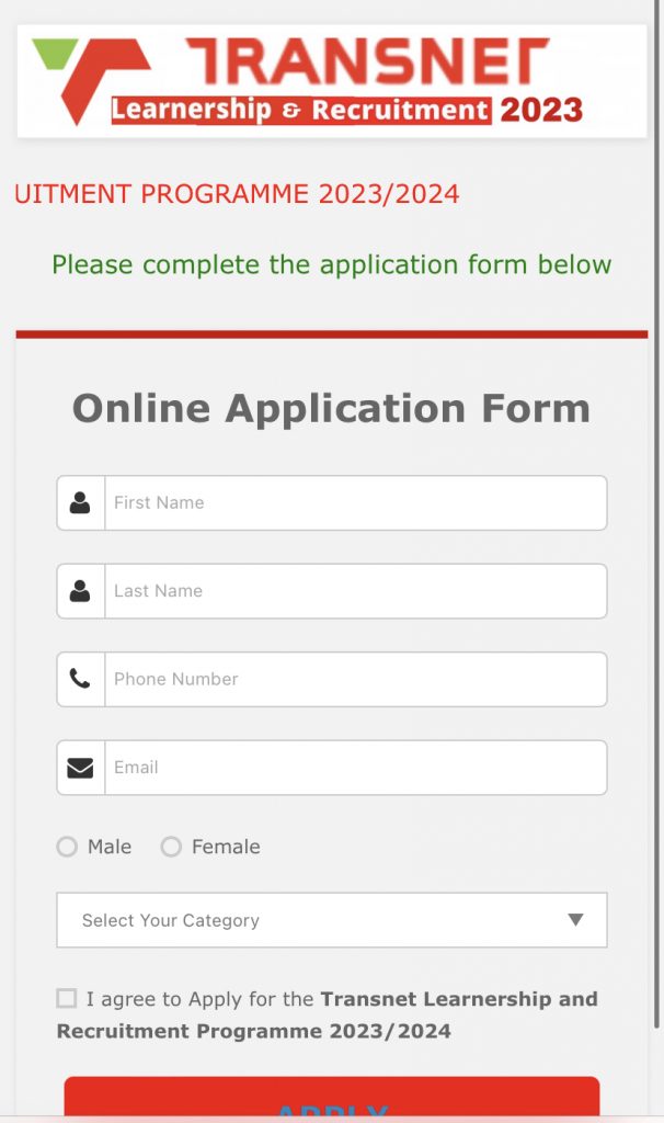 Transnet Learnerships Application